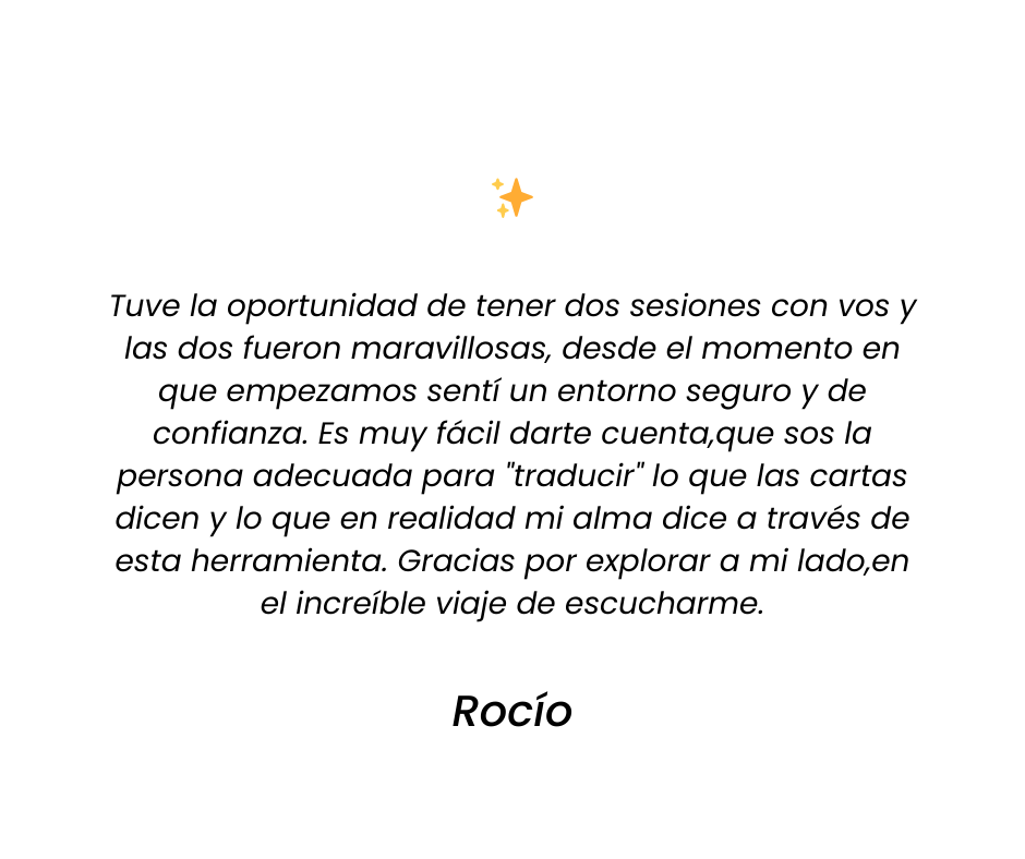 Te ofrezco un espacio íntimo, cómodo y seguro para utilizar los arquetipos del tarot como un mapa simbólico de tus cuerpos mental, emocional, físico y espiritual, y observar cómo estás viviendo la energía que trae cada Arcano en tu presente.